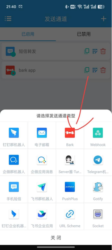 1.2 发送通道选择,可选择钉钉机器人、ios的Bark app、手机短信等
