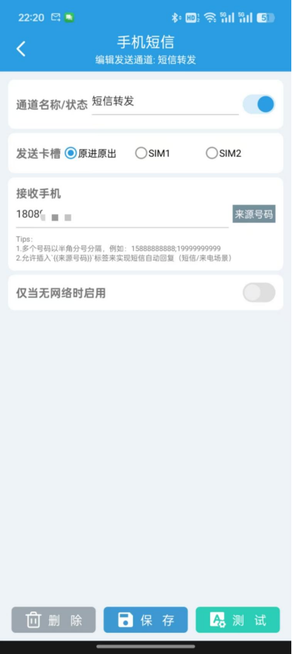 1.3.2 以短信转发为例直接输需要转发的手机号