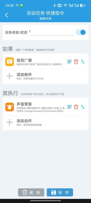 二、直接使用短信转发器中的“自动任务-快捷指令”实现铃声提醒