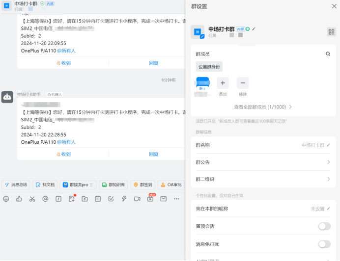 - 在群设置->智能群助手->添加机器人,添加一个新的「自定义机器人」