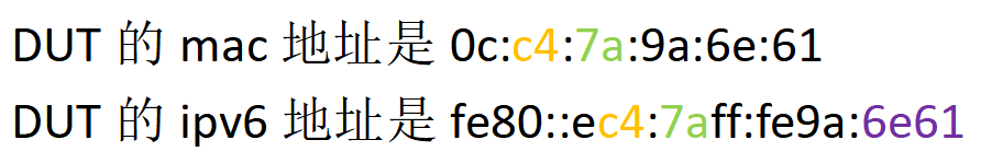 请按照上面相同颜色的对应关系来填写DUT的IPV6地址。或者在启动测试后,测试仪也会根据上图填写的MAC把正确的IPV6地址分配给DUT,可以获取后填写再重新测试。 - PMTU