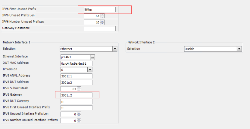 第一个,只要是主机上存在的地址头就行(可以先在测试仪、DUT上按照这个格式配置一个IPV6地址,ping通就行),不要与图中下面检测仪、DUT中填写的一样。