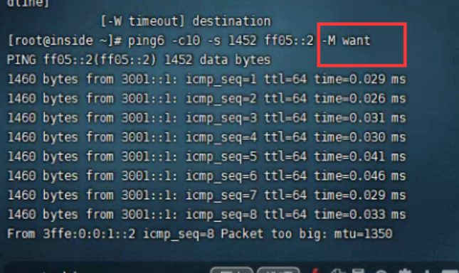 ping -s 1350 ff::05 ping -s 140 3ffe::2:2:ff:fe00:0