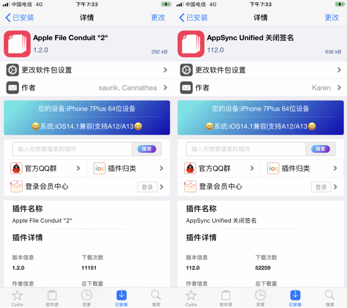 使用爱思助手安装“越狱版”APP解决越狱完成之后仍不能随意安装ipa的问题 发表于 2025/04/10 作者 田原 1 分钟阅读越狱完成之后并不能随意安装ipa,系统还是会对签名进行校验,只有有效签名的ipa才能安装。需要先安装AFC2,再安装APPsync才可以。实测iPhone7 plus(IOS版本14.1 已越狱) 实测Cydia可用源和版本如下: 源:https://repo.cydiabc.top/ 完成后就可以使用爱思助手随意安装ipa包了 其他 iPhone 越狱 小技巧 本文版权归作者所有,未经许可不得转载。 分享